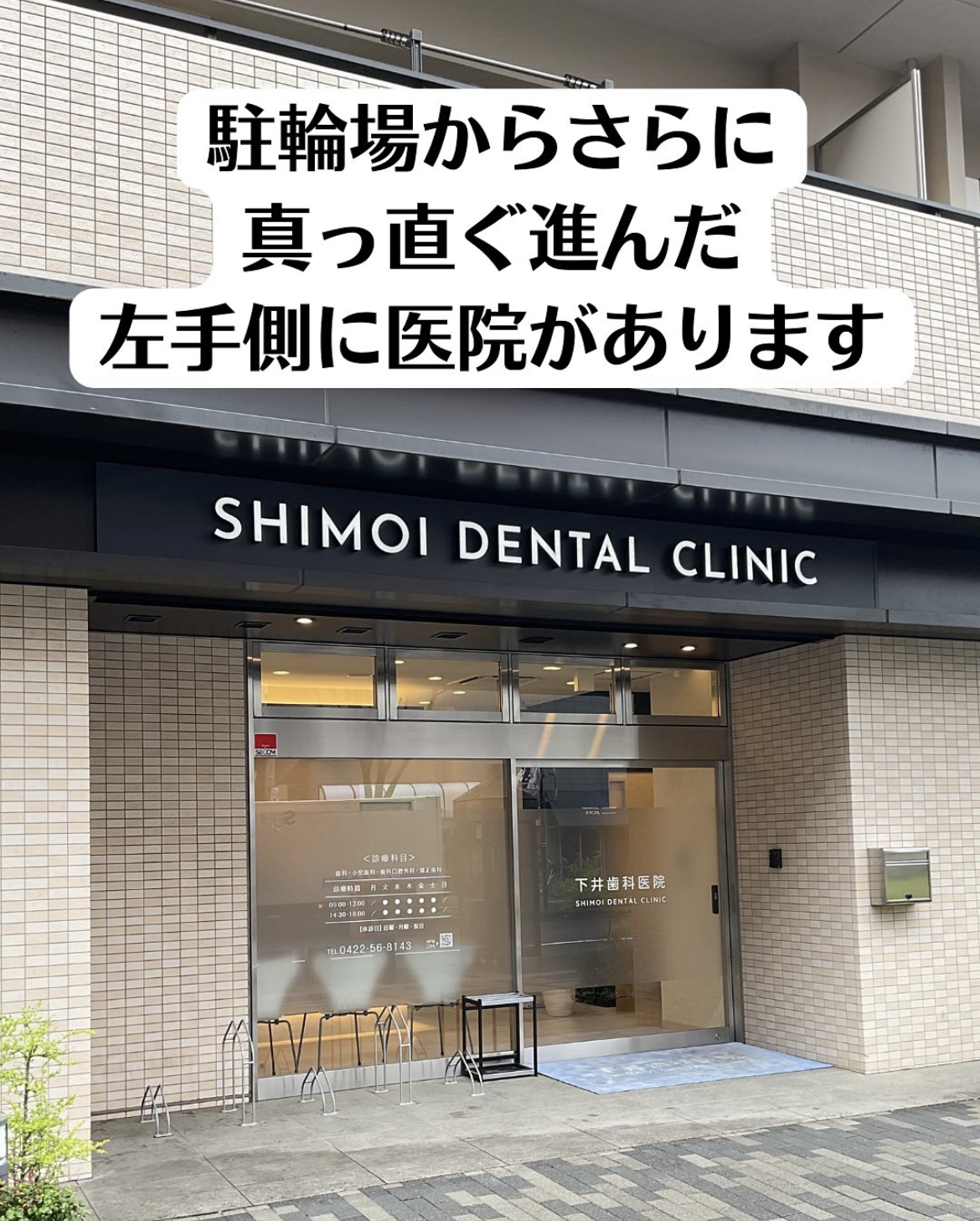 4駐輪場からさらに進んだ先に当院があります