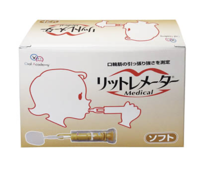 検査は、主に2つの器具を使っていきます。1つ目はリットレメーターといって口輪筋の力を測る物です。口でマウスピースを保持したまま水平に引っ張り、目盛りで口輪筋の強さを数値化します。2つ目は舌圧測定器といい、舌と上顎でマウスピースを押しつぶして舌の強さを測ります。